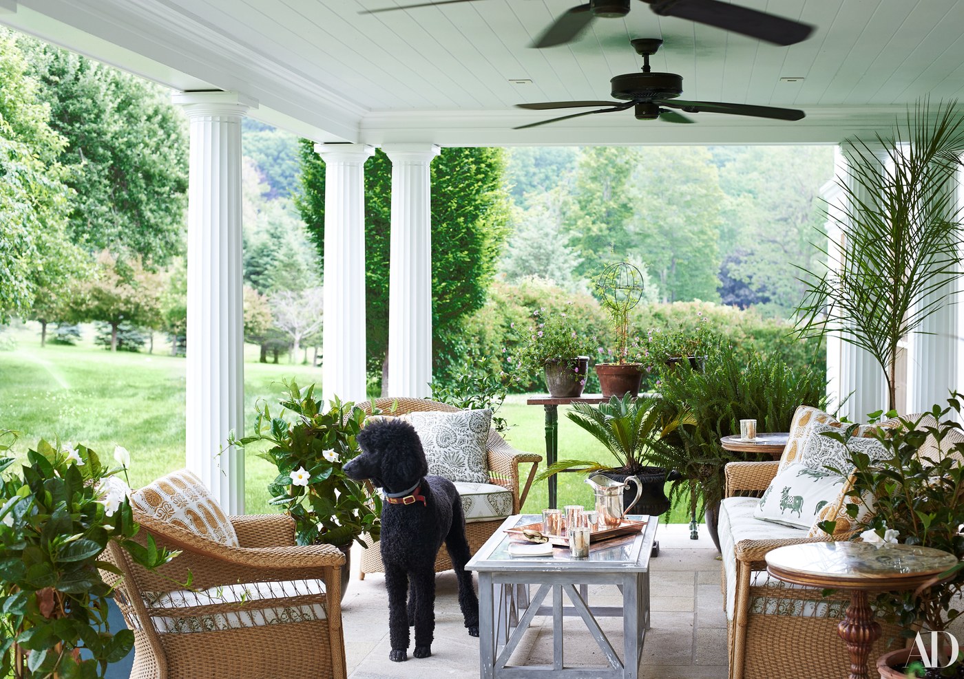 O designer Darren Henault projetou e decorou o próprio refúgio glorioso para que ele e sua família pudessem curtir e relaxar em um vastos jardim de uma antiga fazenda de árvores de pinheiros.